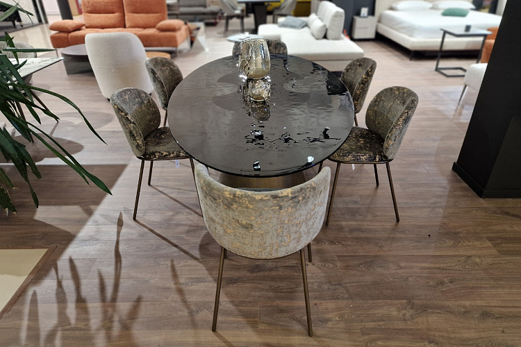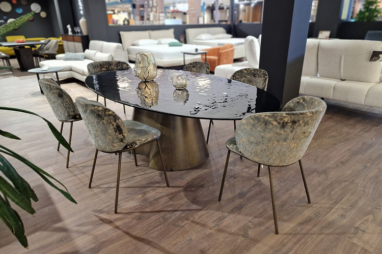 Обеденный стол THOR – футуристичный дизайн и итальянская элегантность от NATISATHOR – это не просто обеденный стол, а настоящий арт-объект от итальянской фабрики NATISA, который станет смелым акцентом в интерьере Вашей гостиной или столовой.Уникальный дизайн основания – искусное сочетание вогнутых и выпуклых элементов в форме усечённого конуса – создаёт ощущение динамики и полёта, притягивая взгляды и восхищая своей оригинальностью.Прочная и элегантная столешница из закалённого стекла толщиной 1,5 см придаёт столу лёгкость и воздушность, не перегружая пространство.THOR – это идеальный выбор для тех, кто ценит:* Эксклюзивный дизайн: футуристичный стиль, смелые формы, гармоничное сочетание металла и стекла.* Безупречное качество: материалы премиум-класса, итальянское мастерство, внимание к деталям.* Индивидуальность: возможность создать стол своей мечты, выбрав материал столешницы (стекло, керамика, натуральный камень, дерево) и цвет металлического основания.Размеры: 240 см (ширина) х 100/120 см (глубина) х 75 см (высота).Создайте свой неповторимый THOR: закажите стол в готовом варианте или проявите свою индивидуальность, подобрав идеальное сочетание материалов и цветов!THOR – стол, который станет центром внимания в Вашем доме!