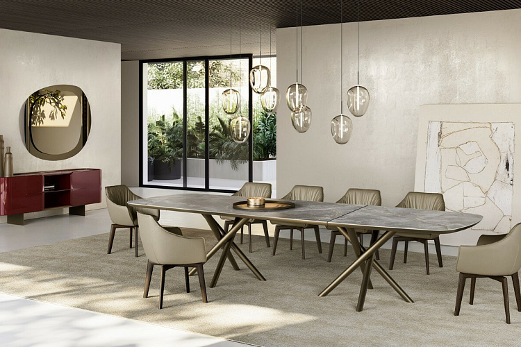 Дизайн Ollen Pal. Легкий и элегантный стол, главный персонаж жилой среды. Скрещенные конические ноги являются опорой для столешницы из стекла, мрамора, дерева или керамики. Большая вариация комбинаций с прямоугольными, круглыми и бочкообразными столешницами позволяет легко подобрать стол под любой интерьер. В 2025 году на выставке в Милане была представлена новая версия столешниц в размере XL. Столешница, изготовленная из керамики или дерева, состоит из двух частей и скрепляется диагональным металлическим профилем, которые несет не только функциональный смысл, но является и стильным элементом, украшающим стол. Дизайнерский итальянский стол от бренда Eforma. EFORMA Бренд Eforma - это настоящий оплот высококачественной итальянской мебели, за которой стоят вековые традиции. Мастера компании - наследники ремесленного мастерства Северо-Восточного итальянского региона Венето, знатоки своего дела, умеющие сделать бесценные предметы мебели, благодаря наилучшим материалам, тщательной обработке и бережного отношения к каждой детали. В этом и выражается совершенство «Made in Italy». Именно истории профессионалов Eforma и синергия различных навыков позволяют создавать особенные продукты, ценные еще на стадии процесса своего рождения. От кожи до роскошных материалов, от элегантных мраморных поверхностей до металлических с новейшим стилем - внимание к мастерству имеет главенствующую позицию, имеющую устойчивое стремление к обновлению: таким образом, мастерство преобразует традицию в повод приблизиться к будущему. Вся мебель Eforma производится исключительно руками мастеров на заводах в Тьене согласно принципам заботы о людях и природе. Идеология Eforma выделяет своей главенствующей ролью способность создавать единственные в своем роде продукты, совершенствующие интерьер, с помощью внимательности к дизайну и безупречному пошиву. Бренд уверен, что только чувственность может открыть безграничный творческий мир, позволяющий родиться безопасным и качественным продуктам. Продукция Eforma демонстрирует совершенство Made in Italy благодаря точному исполнению и особому вниманию к деталям. Столы, серванты, стулья и многое другое полностью изготавливаются вручную с использованием самых лучших материалов и покрытий. Провокационный дизайн и мастерство исполнения делают предметы, которые будут сопровождать вас в повседневной жизни, уникальными. Благодаря постоянному диалогу между традициями и инновациями ремесленный опыт превращается в идею, которая смотрит в перспективу. Коллекции Eforma обогащают мебельный интерьер, соблюдая оригинальный стиль интерьера. Именно из единства ценностей, таких как гармония, утонченность и искусство, рождаются продукты Eforma.