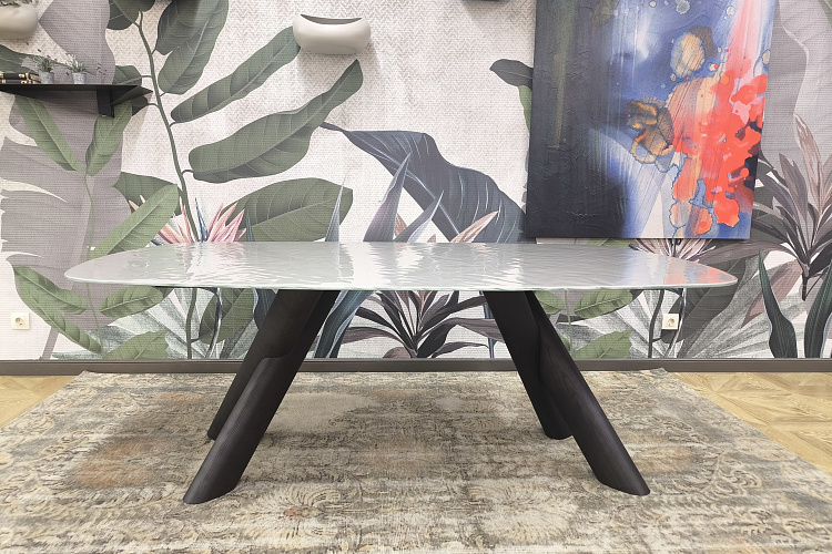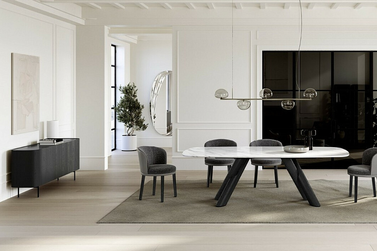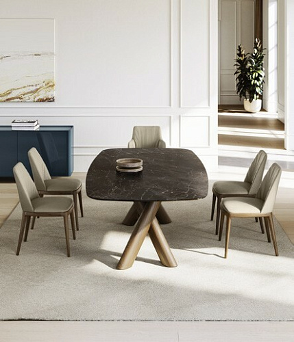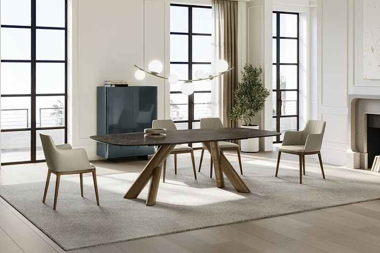 Дизайн Luca Roccadadria. Дизайнерский стол из коллекции 2025 года от итальянского бренда Eforma. Стол является отражением баланса солидности конструкции и визуальной легкости. Дизайнерская особенность стола заключается в рустикальном основании, изготовленном из массива дерева в виде скульптурных и динамичных пересечений, создающим при этом игру объемов и наклонных линий. Стол Canova - это олицетворение стабильности и гармонии форм и материалов. Стол комплектуется различными вариантами столешниц, в том числе керамической, деревянной, стеклянной и мраморной. Наиболее элегантно и изысканно стол смотрится со столешницей в исполнении King, когда край оформлен деревянным кантом, окрашенным в тон основания. EFORMA Бренд Eforma - это настоящий оплот высококачественной итальянской мебели, за которой стоят вековые традиции. Мастера компании - наследники ремесленного мастерства Северо-Восточного итальянского региона Венето, знатоки своего дела, умеющие сделать бесценные предметы мебели, благодаря наилучшим материалам, тщательной обработке и бережного отношения к каждой детали. В этом и выражается совершенство «Made in Italy». Именно истории профессионалов Eforma и синергия различных навыков позволяют создавать особенные продукты, ценные еще на стадии процесса своего рождения. От кожи до роскошных материалов, от элегантных мраморных поверхностей до металлических с новейшим стилем - внимание к мастерству имеет главенствующую позицию, имеющую устойчивое стремление к обновлению: таким образом, мастерство преобразует традицию в повод приблизиться к будущему. Вся мебель Eforma производится исключительно руками мастеров на заводах в Тьене согласно принципам заботы о людях и природе. Идеология Eforma выделяет своей главенствующей ролью способность создавать единственные в своем роде продукты, совершенствующие интерьер, с помощью внимательности к дизайну и безупречному пошиву. Бренд уверен, что только чувственность может открыть безграничный творческий мир, позволяющий родиться безопасным и качественным продуктам. Продукция Eforma демонстрирует совершенство Made in Italy благодаря точному исполнению и особому вниманию к деталям. Столы, серванты, стулья и многое другое полностью изготавливаются вручную с использованием самых лучших материалов и покрытий. Провокационный дизайн и мастерство исполнения делают предметы, которые будут сопровождать вас в повседневной жизни, уникальными. Благодаря постоянному диалогу между традициями и инновациями ремесленный опыт превращается в идею, которая смотрит в перспективу. Коллекции Eforma обогащают мебельный интерьер, соблюдая оригинальный стиль интерьера. Именно из единства ценностей, таких как гармония, утонченность и искусство, рождаются продукты Eforma.