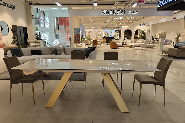 Строгие геометричные формы и роскошные материалы - это новое Art Deco. Стол строгий и шикарный одновременно. Столешница изготовлена из керамогранита, усиленного стеклом. Размер L160/240 P90 H75. Итальянский стол производства 100% Made in Italy. Бренд Tonin Casa. Мебельная фабрика Tonin Casa основана в 1975 году итальянцем Gianni Tonin, который и сегодня стоит во главе компании. В начале восьмидесятых фабрика выпускает каталог своей первой классической коллекции, которая быстро завоевывает внутренний рынок сочетанием традиционного итальянского стиля и функциональностью. В девяностых годах классическую линейку дополняет современная коллекция, ставшая визитной карточкой компании и сделавшая мебель от Tonin Casa легко узнаваемой среди массы безликой современной мебели. Сегодня Gianni Tonin уже вместе со своим сыном Nicola Tonin - продолжателем мебельной династии и дизайнером - создают новые коллекции и, как любой модный дом с мировым именем, выпускают каждый год очередные шедевры мебельного искусства, демонстрируя их на выставках Милана, Нью-Йорка, Парижа и Москвы. Именно стремление производить качественную и стильную дизайнерскую мебель и воплотить в каждом предмете и аксессуаре функциональную роскошь покорило сердца покупателей в Европе и Америке.