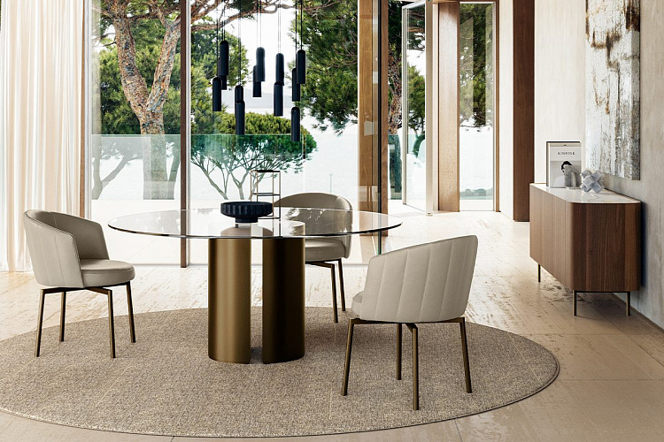 Дизайн Ollen Pal. Dora - это идеальный круглый стол для современной гостиной. В основе его выдержанного стиля лежит центральная база округлых форм. База состоит из двух ног, украшенных нижним обрамлением из черного хрома. Этот элемент придает окончательных и завершающий штрих шикарному столу с круглой столешницей, которая на выбор может быть керамической, стеклянной, деревянной или мраморной. Стол может быть также укомплектован крутящимся подносом Lazy Susan для того чтобы стать главным героем Вашего неповторимого интерьера. Цена просчитана за стол с круглой столешницей из глянцевой керамики с рисунком под мрамор Glossy Onice Основание металлическое - цвет титан Размеры: Диаметр 130 Высота 75 EFORMA Бренд Eforma - это настоящий оплот высококачественной итальянской мебели, за которой стоят вековые традиции. Мастера компании - наследники ремесленного мастерства Северо-Восточного итальянского региона Венето, знатоки своего дела, умеющие сделать бесценные предметы мебели, благодаря наилучшим материалам, тщательной обработке и бережного отношения к каждой детали. В этом и выражается совершенство «Made in Italy». Именно истории профессионалов Eforma и синергия различных навыков позволяют создавать особенные продукты, ценные еще на стадии процесса своего рождения. От кожи до роскошных материалов, от элегантных мраморных поверхностей до металлических с новейшим стилем - внимание к мастерству имеет главенствующую позицию, имеющую устойчивое стремление к обновлению: таким образом, мастерство преобразует традицию в повод приблизиться к будущему. Вся мебель Eforma производится исключительно руками мастеров на заводах в Тьене согласно принципам заботы о людях и природе. Идеология Eforma выделяет своей главенствующей ролью способность создавать единственные в своем роде продукты, совершенствующие интерьер, с помощью внимательности к дизайну и безупречному пошиву. Бренд уверен, что только чувственность может открыть безграничный творческий мир, позволяющий родиться безопасным и качественным продуктам. Продукция Eforma демонстрирует совершенство Made in Italy благодаря точному исполнению и особому вниманию к деталям. Столы, серванты, стулья и многое другое полностью изготавливаются вручную с использованием самых лучших материалов и покрытий. Провокационный дизайн и мастерство исполнения делают предметы, которые будут сопровождать вас в повседневной жизни, уникальными. Благодаря постоянному диалогу между традициями и инновациями ремесленный опыт превращается в идею, которая смотрит в перспективу. Коллекции Eforma обогащают мебельный интерьер, соблюдая оригинальный стиль интерьера. Именно из единства ценностей, таких как гармония, утонченность и искусство, рождаются продукты Eforma.
