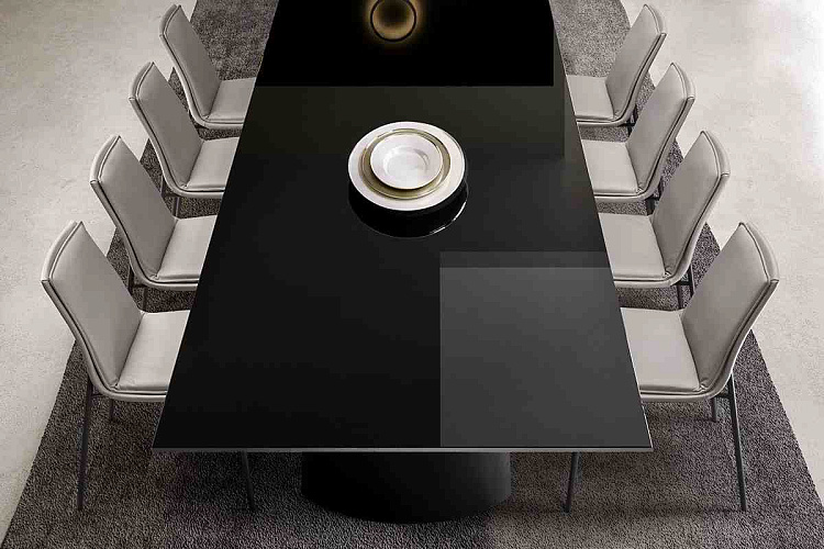 Дизайн Moom. Изогнутые опоры столы, словно два развевающихся на ветру парусника, придают динамичность столу Dotian. Это визуально легкий, но в то же время основательный стол, позволяющий играть перспективой и движением форм. Стол доступен со стеклянной, деревянной, мраморной и керамической столешницей. Прямоугольная или бочкообразная форма позволят вписать стол в любой интерьер Цена за стол с прямоугольной стеклянной столешницей черного цвета Основание металлическое черного цвета. Размер L200 P106 H75. EFORMA Бренд Eforma - это настоящий оплот высококачественной итальянской мебели, за которой стоят вековые традиции. Мастера компании - наследники ремесленного мастерства Северо-Восточного итальянского региона Венето, знатоки своего дела, умеющие сделать бесценные предметы мебели, благодаря наилучшим материалам, тщательной обработке и бережного отношения к каждой детали. В этом и выражается совершенство «Made in Italy». Именно истории профессионалов Eforma и синергия различных навыков позволяют создавать особенные продукты, ценные еще на стадии процесса своего рождения. От кожи до роскошных материалов, от элегантных мраморных поверхностей до металлических с новейшим стилем - внимание к мастерству имеет главенствующую позицию, имеющую устойчивое стремление к обновлению: таким образом, мастерство преобразует традицию в повод приблизиться к будущему. Вся мебель Eforma производится исключительно руками мастеров на заводах в Тьене согласно принципам заботы о людях и природе. Идеология Eforma выделяет своей главенствующей ролью способность создавать единственные в своем роде продукты, совершенствующие интерьер, с помощью внимательности к дизайну и безупречному пошиву. Бренд уверен, что только чувственность может открыть безграничный творческий мир, позволяющий родиться безопасным и качественным продуктам. Продукция Eforma демонстрирует совершенство Made in Italy благодаря точному исполнению и особому вниманию к деталям. Столы, серванты, стулья и многое другое полностью изготавливаются вручную с использованием самых лучших материалов и покрытий. Провокационный дизайн и мастерство исполнения делают предметы, которые будут сопровождать вас в повседневной жизни, уникальными. Благодаря постоянному диалогу между традициями и инновациями ремесленный опыт превращается в идею, которая смотрит в перспективу. Коллекции Eforma обогащают мебельный интерьер, соблюдая оригинальный стиль интерьера. Именно из единства ценностей, таких как гармония, утонченность и искусство, рождаются продукты Eforma.