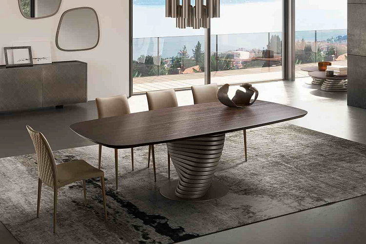Дизайн Moom. Дизайнеры при создания стола вдохновлялись идеями футуризма. Словно разрастающийся тайфун, основание стола приподнимает столешницу над поверхностью благодаря крутящему моменту металла легко выдерживает тяжесть стекла, керамики или мрамора. Круглая модификация опционально оснащается крутящейся подставкой Lazy Susan. Для большей устойчивости для больших размеров стола используются два основания. Цена за стол с деревянной бочкообразной столешницей. Основание металлическое - цвет титан L200 P120 H76. EFORMA Бренд Eforma - это настоящий оплот высококачественной итальянской мебели, за которой стоят вековые традиции. Мастера компании - наследники ремесленного мастерства Северо-Восточного итальянского региона Венето, знатоки своего дела, умеющие сделать бесценные предметы мебели, благодаря наилучшим материалам, тщательной обработке и бережного отношения к каждой детали. В этом и выражается совершенство «Made in Italy». Именно истории профессионалов Eforma и синергия различных навыков позволяют создавать особенные продукты, ценные еще на стадии процесса своего рождения. От кожи до роскошных материалов, от элегантных мраморных поверхностей до металлических с новейшим стилем - внимание к мастерству имеет главенствующую позицию, имеющую устойчивое стремление к обновлению: таким образом, мастерство преобразует традицию в повод приблизиться к будущему. Вся мебель Eforma производится исключительно руками мастеров на заводах в Тьене согласно принципам заботы о людях и природе. Идеология Eforma выделяет своей главенствующей ролью способность создавать единственные в своем роде продукты, совершенствующие интерьер, с помощью внимательности к дизайну и безупречному пошиву. Бренд уверен, что только чувственность может открыть безграничный творческий мир, позволяющий родиться безопасным и качественным продуктам. Продукция Eforma демонстрирует совершенство Made in Italy благодаря точному исполнению и особому вниманию к деталям. Столы, серванты, стулья и многое другое полностью изготавливаются вручную с использованием самых лучших материалов и покрытий. Провокационный дизайн и мастерство исполнения делают предметы, которые будут сопровождать вас в повседневной жизни, уникальными. Благодаря постоянному диалогу между традициями и инновациями ремесленный опыт превращается в идею, которая смотрит в перспективу. Коллекции Eforma обогащают мебельный интерьер, соблюдая оригинальный стиль интерьера. Именно из единства ценностей, таких как гармония, утонченность и искусство, рождаются продукты Eforma.