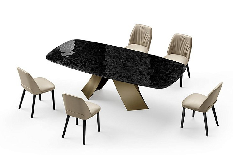 Дизайн Moom. Стол Twist входит в число предметов интерьера. наиболее соответствующих современным интерьерам за счет своей лаконичности. Эклектичная база стола состоит из двух изогнутых оснований, которые в тоже время образуют прочную конструкцию для столешницы, изготовленной из дорогих материалов. Дизайнерский стол Twist обладает способностью визуально трансформироваться в зависимости от того, под каким углом на него смотреть. Игра света и теней придают столу легкость и оригинальность. Для максимального удовлетворения дизайнерских запросов относительно комплектации интерьеров стол доступен с различными вариантами столешниц: керамика, стекло, натуральное дерево и мрамор. Цена просчитана за стол со столешницей в форме бочки из глянцевой керамики с рисунком под мрамор Glossy Onice Основание металлическое - цвет титан Размер:L200 P106 H75 EFORMA Бренд Eforma - это настоящий оплот высококачественной итальянской мебели, за которой стоят вековые традиции. Мастера компании - наследники ремесленного мастерства Северо-Восточного итальянского региона Венето, знатоки своего дела, умеющие сделать бесценные предметы мебели, благодаря наилучшим материалам, тщательной обработке и бережного отношения к каждой детали. В этом и выражается совершенство «Made in Italy». Именно истории профессионалов Eforma и синергия различных навыков позволяют создавать особенные продукты, ценные еще на стадии процесса своего рождения. От кожи до роскошных материалов, от элегантных мраморных поверхностей до металлических с новейшим стилем - внимание к мастерству имеет главенствующую позицию, имеющую устойчивое стремление к обновлению: таким образом, мастерство преобразует традицию в повод приблизиться к будущему. Вся мебель Eforma производится исключительно руками мастеров на заводах в Тьене согласно принципам заботы о людях и природе. Идеология Eforma выделяет своей главенствующей ролью способность создавать единственные в своем роде продукты, совершенствующие интерьер, с помощью внимательности к дизайну и безупречному пошиву. Бренд уверен, что только чувственность может открыть безграничный творческий мир, позволяющий родиться безопасным и качественным продуктам. Продукция Eforma демонстрирует совершенство Made in Italy благодаря точному исполнению и особому вниманию к деталям. Столы, серванты, стулья и многое другое полностью изготавливаются вручную с использованием самых лучших материалов и покрытий. Провокационный дизайн и мастерство исполнения делают предметы, которые будут сопровождать вас в повседневной жизни, уникальными. Благодаря постоянному диалогу между традициями и инновациями ремесленный опыт превращается в идею, которая смотрит в перспективу. Коллекции Eforma обогащают мебельный интерьер, соблюдая оригинальный стиль интерьера. Именно из единства ценностей, таких как гармония, утонченность и искусство, рождаются продукты Eforma.