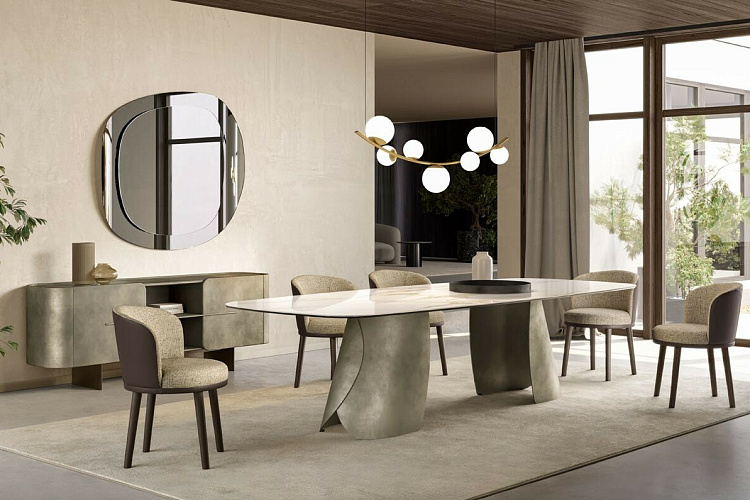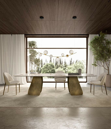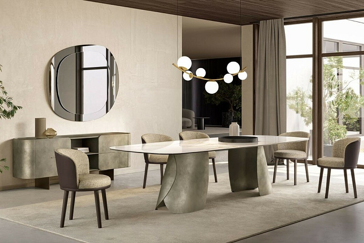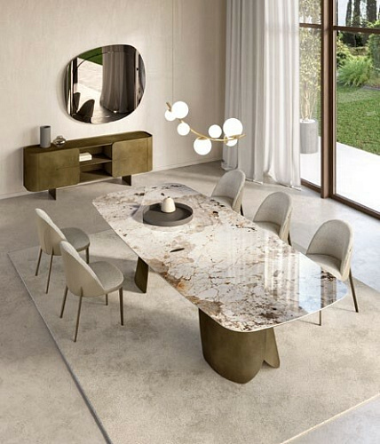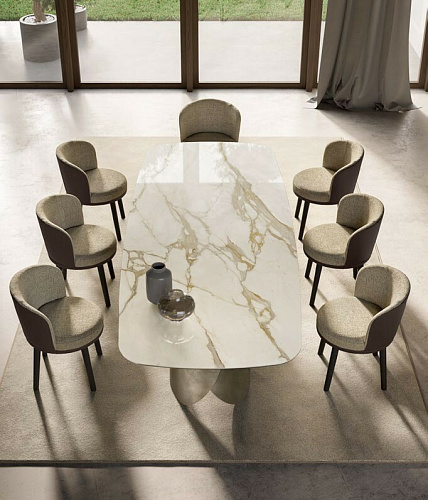Дизайн: Andrea Lucatello. Стол PERLA - жемчужина мебельного дизайна, выражение элегантного и выверенного стиля. Стол с солидными габаритами, не кажущимися тяжеловесными в интерьере. Созданный дизайнером Andrea Lucatello, Стол PERLA является выражением неожиданной визуальной легкости металла, который излучает необычайный, новый свет. Идея дизайна вдохновлена красотой, даруемой морем в виде жемчужины: основание имеет форму створок раковины, сложные металлизированные отделки поддерживают великолепную эстетику стола. Цена просчитана за стол с керамической столешницей бочкообразной формы. Размер L240 P120 H75. Итальянский стол бренда Eforma. 100% Made in Italy. EFORMA Бренд Eforma - это настоящий оплот высококачественной итальянской мебели, за которой стоят вековые традиции. Мастера компании - наследники ремесленного мастерства Северо-Восточного итальянского региона Венето, знатоки своего дела, умеющие сделать бесценные предметы мебели, благодаря наилучшим материалам, тщательной обработке и бережного отношения к каждой детали. В этом и выражается совершенство «Made in Italy». Именно истории профессионалов Eforma и синергия различных навыков позволяют создавать особенные продукты, ценные еще на стадии процесса своего рождения. От кожи до роскошных материалов, от элегантных мраморных поверхностей до металлических с новейшим стилем - внимание к мастерству имеет главенствующую позицию, имеющую устойчивое стремление к обновлению: таким образом, мастерство преобразует традицию в повод приблизиться к будущему. Вся мебель Eforma производится исключительно руками мастеров на заводах в Тьене согласно принципам заботы о людях и природе. Идеология Eforma выделяет своей главенствующей ролью способность создавать единственные в своем роде продукты, совершенствующие интерьер, с помощью внимательности к дизайну и безупречному пошиву. Бренд уверен, что только чувственность может открыть безграничный творческий мир, позволяющий родиться безопасным и качественным продуктам. Продукция Eforma демонстрирует совершенство Made in Italy благодаря точному исполнению и особому вниманию к деталям. Столы, серванты, стулья и многое другое полностью изготавливаются вручную с использованием самых лучших материалов и покрытий. Провокационный дизайн и мастерство исполнения делают предметы, которые будут сопровождать вас в повседневной жизни, уникальными. Благодаря постоянному диалогу между традициями и инновациями ремесленный опыт превращается в идею, которая смотрит в перспективу. Коллекции Eforma обогащают мебельный интерьер, соблюдая оригинальный стиль интерьера. Именно из единства ценностей, таких как гармония, утонченность и искусство, рождаются продукты Eforma.