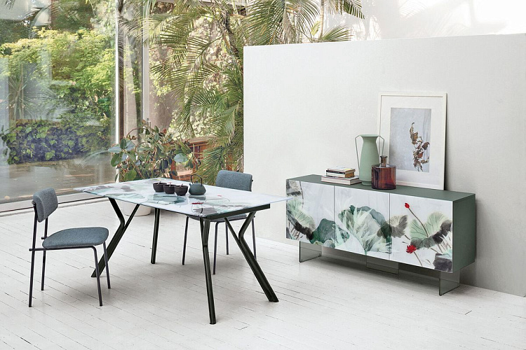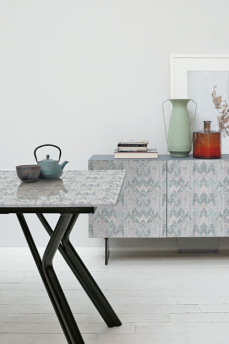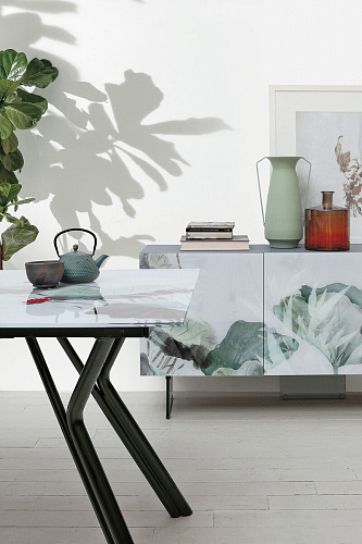 Креативный стол из новой коллекции 2023 года. Отличительная особенность стола это стеклянная столешница с цифровой печатью. В сочетании с тумбой с аналогичными фасадами или самостоятельно стол придает помещению свой стиль и уникальность. Дополнительные вставки из МДФ в цвет столешницы позволяют увеличить размер стола в зависимости от обстоятельств. Размер L130/165/200 P85 H75. Стол также доступен в размере L160/200/240 P90 H75. Компания Target Point начала свою историю в 1996 году с идеи создания и производства предметов интерьера, которые могли бы удовлетворить возрастающие потребности итальянского рынка. Сегодня коллекция Target Point предлагает нашему вниманию обширную коллекцию дизайнерских изделий - от кованых и мягких кроватей до обеденных групп и разных видов корпусной мебели. Target Point создает мебель оригинального дизайна по доступной цене, уделяя особое внимание функциональности и выбору высококачественных материалов, отвечающих всем необходимым эстетическим и экологическим нормам. Для производства мебели Target Point использует уже зарекомендовавший себя на рынке Gres Porcellanato с эффектом натурального мрамора, высококачественный шпон различных цветов и оттенков, экспериментирует с декоративной отделкой из металла с эффектом "винтаж" или рисунком. В качестве обивочных материалов для стульев и кресел предлагается на выбор микрофибра и супермягкую экокожу Soft Touch. Отдельного внимания заслуживает направление кроватей на любой вкус. Кованые или мягкие, с возможностью комплектации подсветкой в изголовье или изножье, подъемным механизмом с подъемом под углом 45 градусов либо с опцией Easy Lift. Механизм Easy Lift на газовых амортизаторах позволит без усилий поднять раму вместе с матрасом в положение параллельно полу, аккуратно привести в порядок постельное белье на кровати и с еще большим удобством пользоваться бельевым ящиком в основании. На сегодняшний день Target Point представляет три основные коллекции - Modern, Classico и Vintage, среди которых каждый найдет для себя предметы интерьера по своему вкусу.