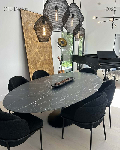 Дизайнер Eero Saarinen В 1956 году архитектор Eero Saarinen создал коллекцию мебели Triumph для компании Knoll. Она была основана на принципах тотальной архитектуры Баухауса, где мебель гармонично дополняет пространство, создавая идеальный дизайн. Knoll получила эксклюзивный патент на производство. В своём подходе к архитектуре и дизайну Eero Saarinen стремился найти основную идею и свести её к наиболее эффективной структурной концепции. Непринужденное величие стола родилось из желания устранить путаницу, вызванную «скоплением ножек» под типичными стульями и столами. Eero Saarinen нашёл идеальный баланс между красотой и прочностью. Даже при максимальном размере столешницы 330 см, стол устойчив и поражает своей стабильностью. Стол Saarinen и стул Tulip стали символами современного дизайна середины XX века. Однако срок патента Knoll на их эксклюзивное производство истёк, и сегодня бренд CTS Design создаёт культовую дизайнерскую мебель, используя оригинальные материалы и формы, указанные в патенте. Основание стола выполнено из прочного литого алюминия, а столешница — из керамогранита, свойства которого напоминают натуральный камень. Благодаря высокой прочности, столешница обеспечивает чистоту, водостойкость и стабильность цвета. Совершая покупку вы не просто приобретаете стол, вы инвестируете в подлинное произведение искусства! Мраморная столешница стола имеет специальное покрытие из полистирола, защищающее мрамор от воздействия красящих продуктов, не позволяя веществам проникать внутрь структуры, образующейся естественным природным образом. Помимо этого покрытие делает мрамор устойчивым к механическим воздействиям и устойчивым к плесени. Размер L219 P121 H73 Наша история CTS Design — тосканская компания, производящая стулья, столы и дизайнерские предметы интерьера для дома и общественных помещений. Все этапы производственного процесса осуществляются в Италии квалифицированными и высоко профессиональными рабочими. CTS производит и продает по всему миру столы, стулья, кресла и диваны, вдохновляясь дизайнерским стилем Баухаус и самыми яркими предметами мебели, представляющими его. История CTS Design уходит корнями в 1976 году, когда в Поджибонси, провинция Сиена Вальдемаро, господин Ваннони основал компанию по производству стульев. Именно страсть к ремесленному производству мебели ручной работы и любовь к деталям легли в основу успешного бренда. Сегодня CTS Design является хранителем традиционных методов ремесла, искусно объединенных с использованием самых современных технологий. Для создания продукции, полностью произведенной в Италии, используются только высококачественные материалы: массив дуба, кожа, обработанная итальянскими кожевенными артелями, экокожа, сертифицированная для контрактного использования, мрамор, отобранный непосредственно в карьере, качественная керамика и ткани премиум-класса. Внимание к деталям, качеству материалов и ко всем этапам обработки всегда отличали CTS Design. Эти факторы является основополагающим для того, чтобы иметь возможность предлагать клиентам постоянный и превосходный стандарт качества. Это позволило CTS присутствовать на итальянском и международном рынке на протяжении почти 50 лет. Бренд CTS Design ориентирован как на розничных продавцов, так и на производителей, дизайн-студии и архитектурные студии, предлагая широкий ассортимен