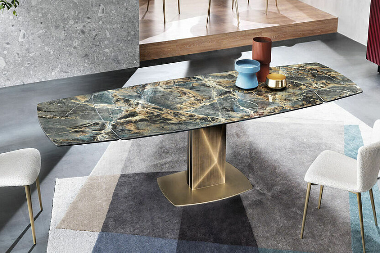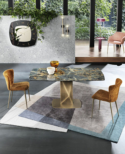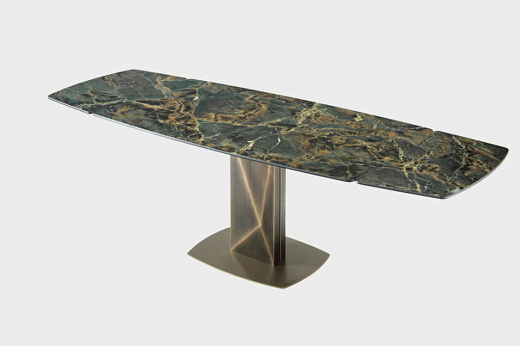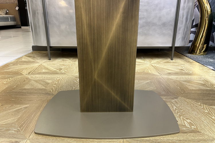 Design by Riflessi Lab Стол Sabino - это проявление решительного дизайна. Прежде всего он отличается своими компактными размерами. Металлическое основание, визуально напоминающее ограненный бриллиант, имеет брашированную отделку, выполненную вручную. Основательная и надежная база эффектно сочетается с керамической столешницей бочкообразной формы. Как результат мы имеет стол, сочетающий в себе невероятную красоту материалов, стиль luxury и высокий уровень итальянского мастерства. Размер L145/225 P90 H75. История компании Riflessi с самого основания бросила себе вызов, который успешно смогла преодолеть благодаря сосредоточенности на качестве и сервисе, особому вниманию к предложениям, поступающим из-за рубежа, и их сочетанию с собственным стилем. Листайте ниже, чтобы вместе с нами рассмотреть поближе столы этого бренда. За последние 10 лет популярность Riflessi многократно возросла на мировом рынке благодаря строгому техническому контролю за качеством производства, возможному благодаря тому, что весь цикл производства происходит в Италии. И только в таком случае продукт имеет право носить узнаваемый Made in Italy. Качественная и продуманная упаковка позволяет транспортировать мебель на очень дальние расстояния. С 2016 года, в связи с возросшей популярностью у российского покупателя продукции фабрики, Riflessi открывает в центре Москвы lофициальный салон, где операторы мебельного рынка, архитекторы, дизайнеры и частные розничные клиенты могут ознакомиться с продукцией всех коллекций и воочию убедится в восхитительном качестве мебели с надписью 100% Made in Italy.