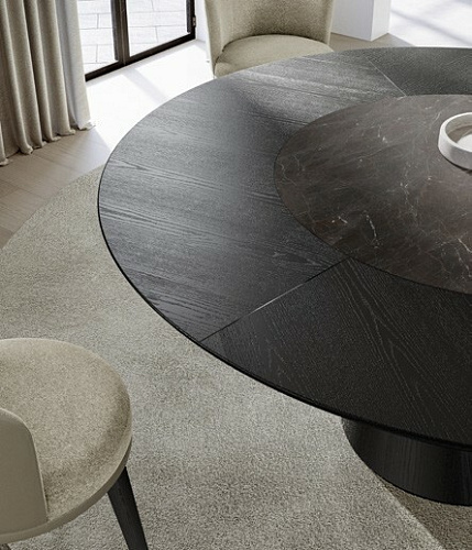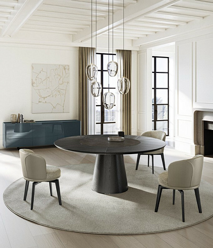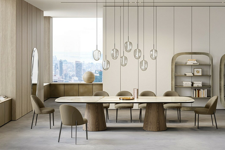 Дизайн Nello Palomba. Дизайнерский итальянский стол от бренда Eforma. Солидный стол со скульптурным аспектом, выраженным простым деревянным основанием, но при этом имеющим декоративный акцент в виде черного хромированного профиля. Стол комплектуется различными вариантами столешниц, в том числе керамической, деревянной, стеклянной и мраморной. Наиболее элегантно и изысканно стол смотрится со столешницей в исполнении King, когда край оформлен деревянным кантом, окрашенным в тон основания. В 2025 году на выставке в Милане была представлена новая версия столешниц в размере XL. Столешница, изготовленная из керамики или дерева, состоит из двух частей и скрепляется диагональным металлическим профилем, которые несет не только функциональный смысл, но является и стильным элементом, украшающим стол. EFORMA Бренд Eforma - это настоящий оплот высококачественной итальянской мебели, за которой стоят вековые традиции. Мастера компании - наследники ремесленного мастерства Северо-Восточного итальянского региона Венето, знатоки своего дела, умеющие сделать бесценные предметы мебели, благодаря наилучшим материалам, тщательной обработке и бережного отношения к каждой детали. В этом и выражается совершенство «Made in Italy». Именно истории профессионалов Eforma и синергия различных навыков позволяют создавать особенные продукты, ценные еще на стадии процесса своего рождения. От кожи до роскошных материалов, от элегантных мраморных поверхностей до металлических с новейшим стилем - внимание к мастерству имеет главенствующую позицию, имеющую устойчивое стремление к обновлению: таким образом, мастерство преобразует традицию в повод приблизиться к будущему. Вся мебель Eforma производится исключительно руками мастеров на заводах в Тьене согласно принципам заботы о людях и природе. Идеология Eforma выделяет своей главенствующей ролью способность создавать единственные в своем роде продукты, совершенствующие интерьер, с помощью внимательности к дизайну и безупречному пошиву. Бренд уверен, что только чувственность может открыть безграничный творческий мир, позволяющий родиться безопасным и качественным продуктам. Продукция Eforma демонстрирует совершенство Made in Italy благодаря точному исполнению и особому вниманию к деталям. Столы, серванты, стулья и многое другое полностью изготавливаются вручную с использованием самых лучших материалов и покрытий. Провокационный дизайн и мастерство исполнения делают предметы, которые будут сопровождать вас в повседневной жизни, уникальными. Благодаря постоянному диалогу между традициями и инновациями ремесленный опыт превращается в идею, которая смотрит в перспективу. Коллекции Eforma обогащают мебельный интерьер, соблюдая оригинальный стиль интерьера. Именно из единства ценностей, таких как гармония, утонченность и искусство, рождаются продукты Eforma.
