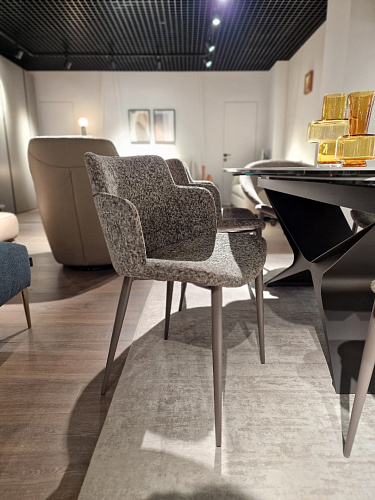 Стул Carol – итальянская элегантность в вашем домеРазмеры: 51 см ширина, 56 см глубина, высота 83 см. Carol от SEDIT – это стул с изысканным дизайном, который станет украшением как классического, так и современного интерьера. Плавные линии, высокие подлокотники, переходящие в спинку, и слегка изогнутое сиденье создают ощущение комфорта и уюта. Основные преимущества: * Эргономичность: Изогнутая форма сиденья обеспечивает комфортную посадку и снимает напряжение со спины.* Универсальность: Carol идеально впишется в гостиную, спальню, кухню, а также в интерьер отеля, ресторана или бара. * Итальянское качество: Стул изготовлен на фабрике SEDIT с использованием высококачественных материалов и с вниманием к каждой детали. * Создайте свой неповторимый Carol: вы можете приобрести готовый стул из нашего ассортимента или заказать индивидуальное исполнение, выбрав ткань и цвет ножек по своему вкусу из палитры нашего каталога.