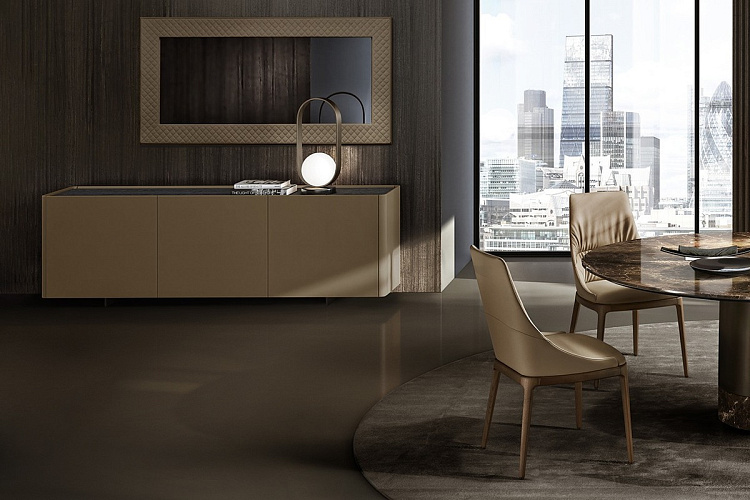Дизайн: Antoy Filips. Тумба Alma в натуральной коже - это предмет интерьера в современном стиле, предлагающий дизайнерское решение для хранения. Тумба имеет каркас и двери, обтянутые натуральной кожей или нубуком. Практическая функция тумбы реализована за счет стеклянных полок благородного дымчатого цвета, обеспечивающих удобное хранение бокалов, столовых приборов, посуды и позволяющих использовать тумбу как бар. Различные материалы и варианты отделок позволяют персонализировать топ тумбы: это может быть натуральный шпон дерева, керамика или покраска. Изысканность, дополненная практичностью, позволяет использовать тумбу как в домашних интерьерах, так и в рабочих пространствах. Тумба дополняет коллекцию из тумб и витрин, которые могут быть изготовлены в различных размерах. Помимо гладкой отделки из кожи, витрины и тумбы могут иметь люксовую отделку Diamond из простеганной ромбовидной стежкой кожи или нубука. EFORMA Бренд Eforma - это настоящий оплот высококачественной итальянской мебели, за которой стоят вековые традиции. Мастера компании - наследники ремесленного мастерства Северо-Восточного итальянского региона Венето, знатоки своего дела, умеющие сделать бесценные предметы мебели, благодаря наилучшим материалам, тщательной обработке и бережного отношения к каждой детали. В этом и выражается совершенство «Made in Italy». Именно истории профессионалов Eforma и синергия различных навыков позволяют создавать особенные продукты, ценные еще на стадии процесса своего рождения. От кожи до роскошных материалов, от элегантных мраморных поверхностей до металлических с новейшим стилем - внимание к мастерству имеет главенствующую позицию, имеющую устойчивое стремление к обновлению: таким образом, мастерство преобразует традицию в повод приблизиться к будущему. Вся мебель Eforma производится исключительно руками мастеров на заводах в Тьене согласно принципам заботы о людях и природе. Идеология Eforma выделяет своей главенствующей ролью способность создавать единственные в своем роде продукты, совершенствующие интерьер, с помощью внимательности к дизайну и безупречному пошиву. Бренд уверен, что только чувственность может открыть безграничный творческий мир, позволяющий родиться безопасным и качественным продуктам. Продукция Eforma демонстрирует совершенство Made in Italy благодаря точному исполнению и особому вниманию к деталям. Столы, серванты, стулья и многое другое полностью изготавливаются вручную с использованием самых лучших материалов и покрытий. Провокационный дизайн и мастерство исполнения делают предметы, которые будут сопровождать вас в повседневной жизни, уникальными. Благодаря постоянному диалогу между традициями и инновациями ремесленный опыт превращается в идею, которая смотрит в перспективу. Коллекции Eforma обогащают мебельный интерьер, соблюдая оригинальный стиль интерьера. Именно из единства ценностей, таких как гармония, утонченность и искусство, рождаются продукты Eforma.