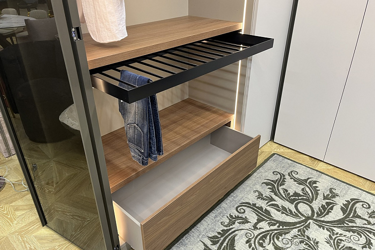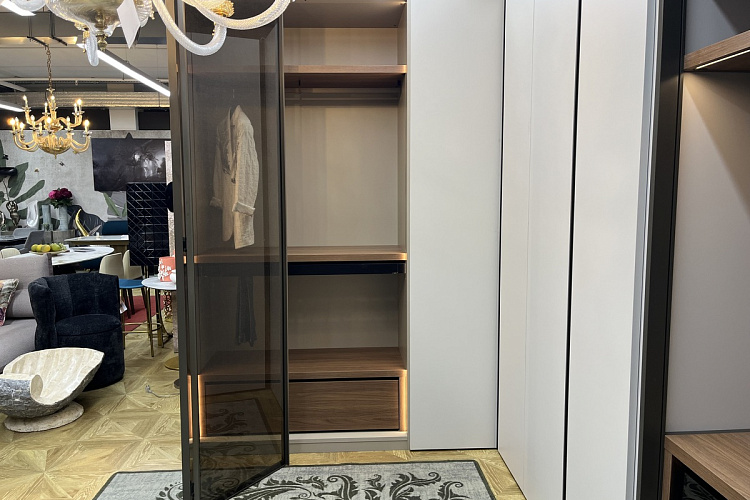 Композиция, составленная из элементов, вошедших в новую коллекцию шкафов от всемирно известного бренда Dall`Agnese. Nodo Система гардеробных Scena Интегрированный санитайзер Стеклянная дверь Gluss Uo, с механизмом открывания Soffietto по принципу складной двери. Задача итальянской мебельной фабрики Dall’Agnese – служить комфорту своих клиентов. Вот уже 70 лет итальянская фабрика Dall’Agnese создает мебель премиум уровня из высококачественных материалов. На всех этапах производства строго отслеживается соблюдение технологии и качество изделий. Мебель Dall'Agnese сертифицирована Институтом защиты итальянских производителей ITPI, что подтверждает полностью итальянское производство. Также компания получила сертификат менеджмента качества по европейской системе ISO 9001.