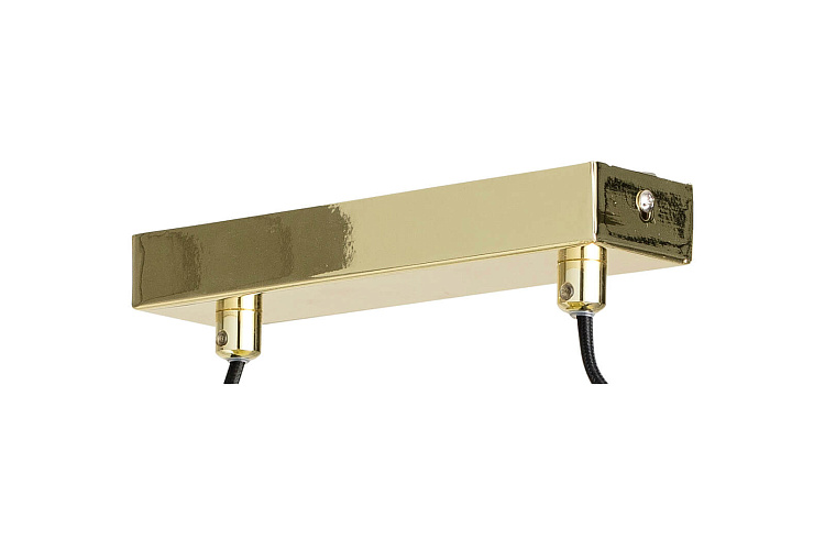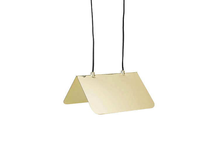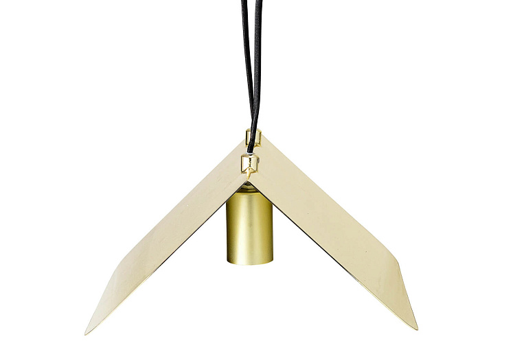 Красивая подвесная лампа из металла золотистого цвета от интерьерного бренда Bloomingville. Будет прекрасно смотреться над обеденным столом из дерева. L30xH14xW30см.