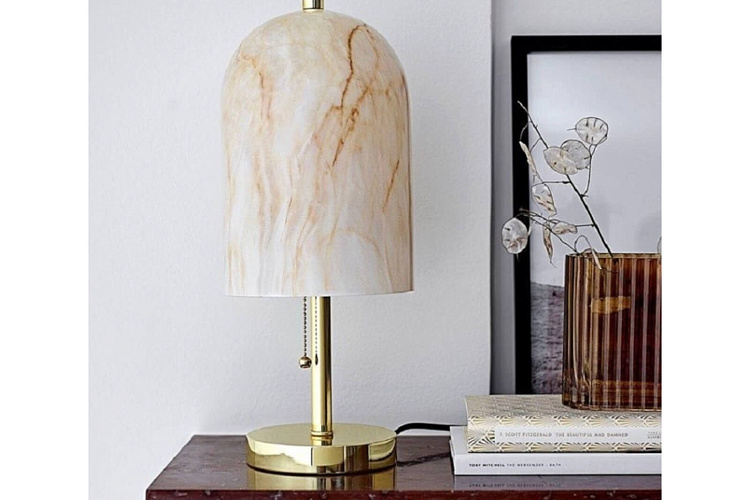 Чрезвычайно стильная настольная лампа Bloomingville имеет куполообразный стеклянный абажур с красивым мраморным эффектом.