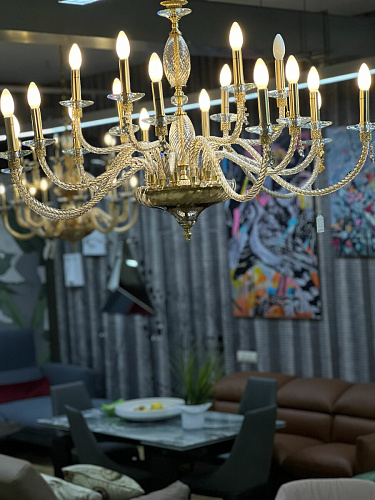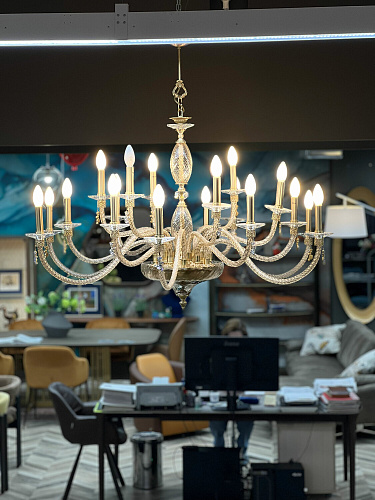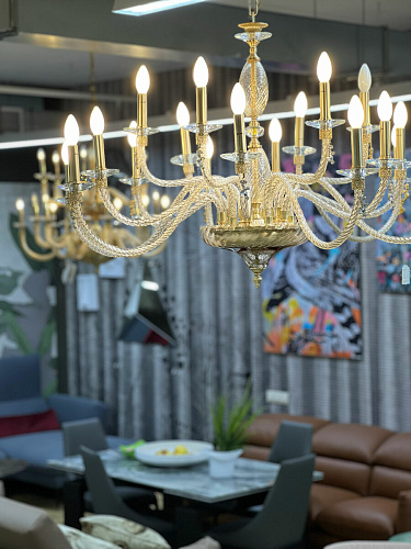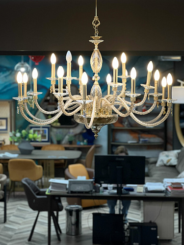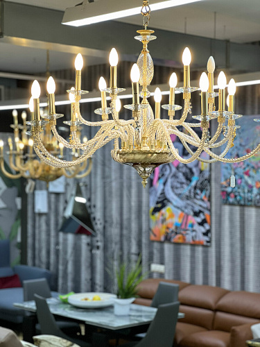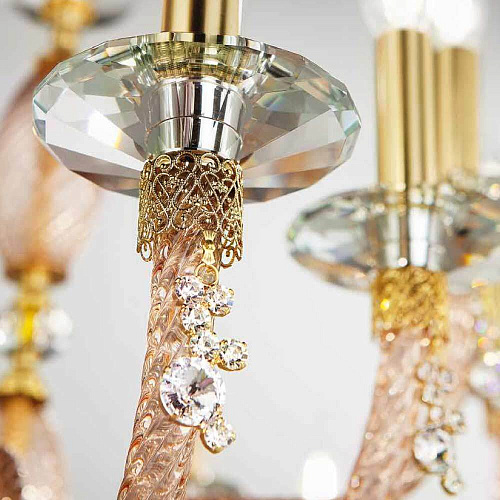Элегантная люстра на 16 рожков из Муранского розового стекла с элементами из прозрачного стекла и металлическими деталями, покрытыми золотой фольгой. Brunito. Линейка люстр DAFNE — это воплощение изящества и утончённой красоты, созданная с использованием выдувного стекла ручной работы. Каждая деталь металлического каркаса словно обёрнута тонкой, струящейся вуалью из стекла, переливающейся в палитре изысканных цветов: белом атласе, медовом, чайной розе, фуме (насыщенном тёмно-сером оттенке) и полностью прозрачном. Основания рожков и декоративные подвески с кристаллами выполнены с ювелирной точностью, демонстрируя мастерство ручной работы. Искусная филигрань, как кружевной воротник, окутывает основания рожков, создавая ощущение лёгкости и воздушности. Металлический каркас, выполненный в цвете тёмного серебра, сияющего или сатинового золота, мягко просвечивает сквозь выдувное стекло, подчёркивая элегантность и благородство каждой модели. Свет — это история, которую мы хотим вам рассказать. История бренда Lux Illuminazione - это история 100% Made in Italy. Группа Ciciriello берет начало в 80-х годах прошлого века. Giovanni Ciciriello, как основатель компании, обладая дальновидными предпринимательским взглядами, заложил первый кирпичик бренда, передавая свои мечты и проекты своим детям., которые еще в юном возрасте берут на себя руководство, тем самым привнося в традиции дух инноваций. Lux Illiminazione - это воплощение итальянского вкуса и ремесленного искусства. Ценности, на которых основывается бренд - это самые лучшие мастера, творчество и отбор высококачественных и дорогих материалов. Внимание к деталям, следование традициям и интеграция в современный дизайн характеризуют продукцию от Lux Illuminazione как настоящий итальянский стиль. Размер: D 118 H 100 Если дом обставлен дорогостоящей мебелью, то источником света должно быть, если не само солнце, то близкое ему по значимости - светило. История бренда Lux Illuminazione - это история 100% Made in Italy. Группа Ciciriello берет начало в 80-х годах прошлого века. Светильники от итальянской фабрики Lux Illiminazione создаются настоящими профессионалами своего дела вот уже более 20 лет. Giovanni Ciciriello, как основатель компании, обладая дальновидными предпринимательским взглядами, заложил первый кирпичик бренда, передавая свои мечты и проекты своим детям., которые еще в юном возрасте берут на себя руководство, тем самым привнося в традиции дух инноваций. Lux Illiminazione - это воплощение итальянского вкуса и ремесленного искусства. Ценности, на которых основывается бренд - это самые лучшие мастера, творчество и отбор высококачественных и дорогих материалов. Внимание к деталям, следование традициям и интеграция в современный дизайн характеризуют продукцию от Lux Illuminazione как настоящий итальянский стиль. Идеальное сочетание итальянских традиций с инновациями - главное кредо компании Lux Illiminazione. Выбор материалов является результатом тщательного отбора среди лучших на рынке: кристаллы Scholer , лиможский фарфор, стекла муранских мастеров и высококачественная латунь. Фабричные заготовки искусно обрабатываются ремесленниками фабрики, на изделия вручную наносится золотая, серебряная фольга и французское золото.