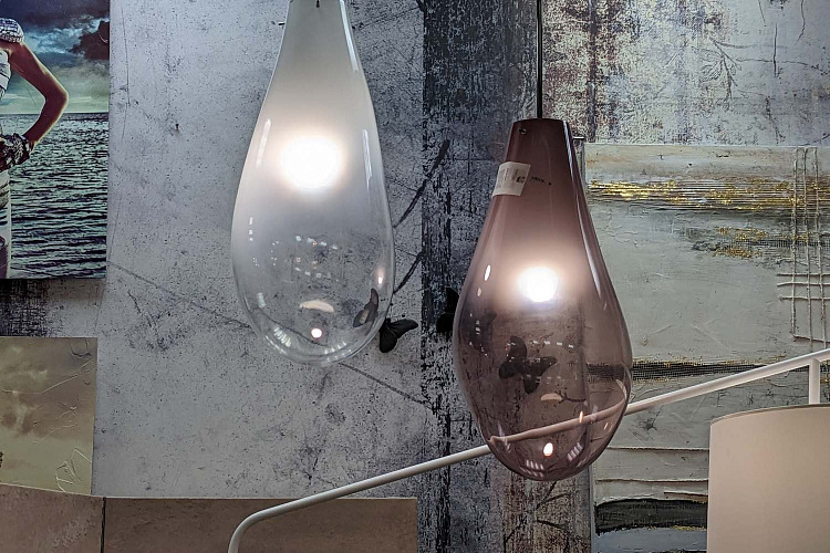 Flou. p433x290 H 60 Ø 35 cm Подвесной светильник из цветного стекла. Цвета: дымчатый, дымчатый, аквамарин и аметист. Бренд Adriani & Rossi был создан в 1994 году Стефано Адриани. Adriani & Rossi специализируется на объектах декора интерьера жилых помещений, интерьерных салонов, выставочных, офисных и других пространств. В 2011 году бренд получил Золотой Компас - важнейшую премию в мире в сфере дизайна.