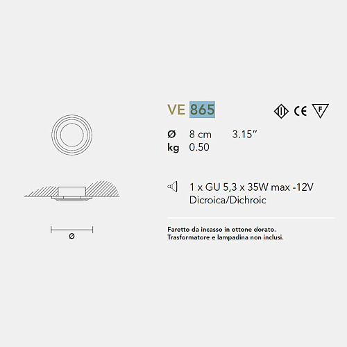 Встраиваемый светильник Masiero Brass & Spots VE 865 gold Золотой/. Вы можете получить подробную консультацию и приобрести этот товар в салоне DELIGHT в галерее интерьеров Твинстор.