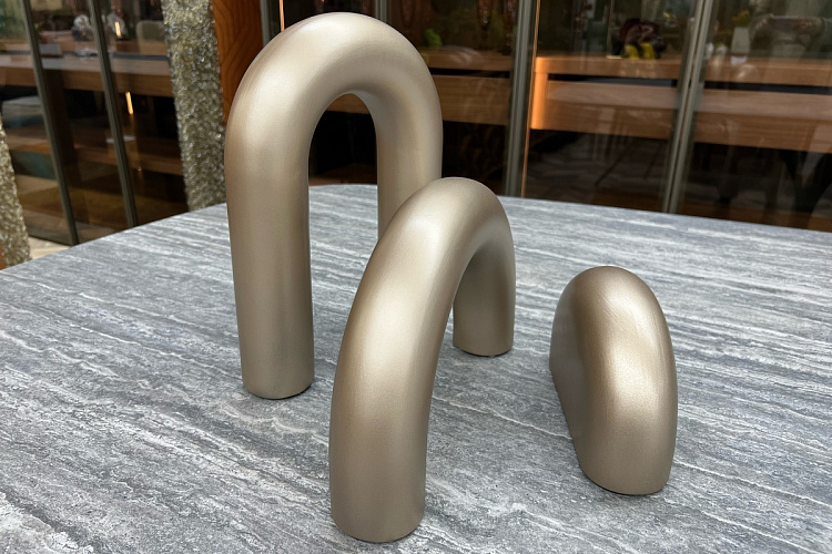 Интерьерный аксессуар из керамики. Скульптурная композиция из трех элементов. Отделка шампань. Размер L 22 H 30 cm/ L 30 H 20 cm/ L 20 H 12 cm Бренд Adriani & Rossi был создан в 1994 году Стефано Адриани. Adriani & Rossi специализируется на объектах декора интерьера жилых помещений, интерьерных салонов, выставочных, офисных и других пространств. В 2011 году бренд получил Золотой Компас - важнейшую премию в мире в сфере дизайна.