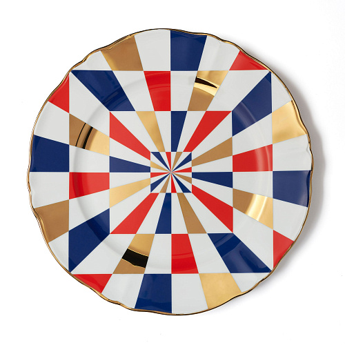 Круглое блюдо Sorte из коллекции Abracadabra. Фарфоровое круглое блюдо с цветной деколью и золотыми деталями. Подходит для посудомоечной машины до 250 циклов, не подходит для микроволновой печи. Диаметр 32.5 см. Дизайн: La Tigre.