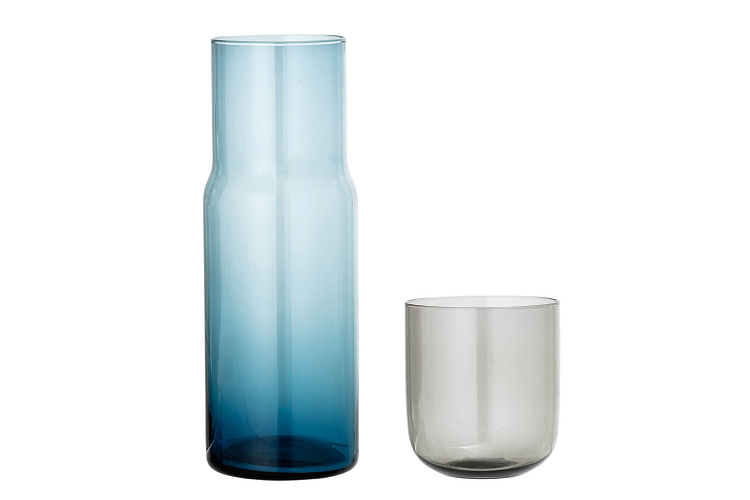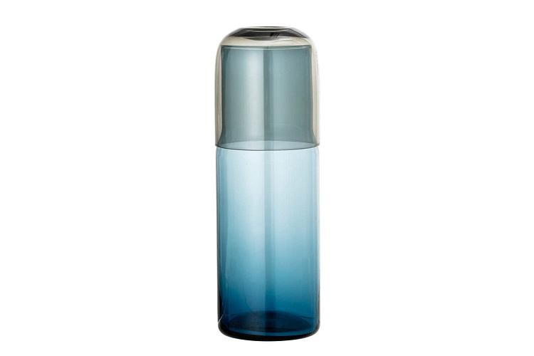 Стильный графин, ручной работы из переработанного окрашенного стекла. Используйте для вина или воды.. Объем 1050 мл. Графин D8,5xH23,5 , стакан D8,5xH9 см.