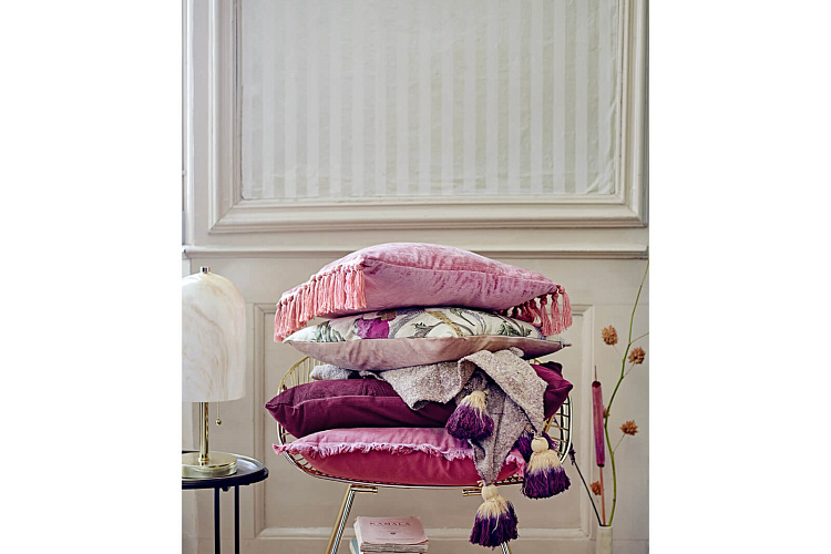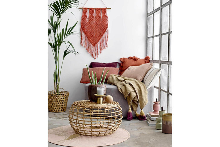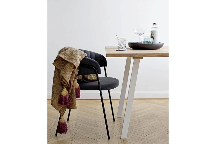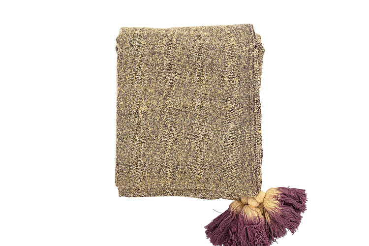 Плед в приглушенных тонах, уютных фактурах, отделанное помпонами по краям. 55% акрил, 45% хлопок. 170х130см.