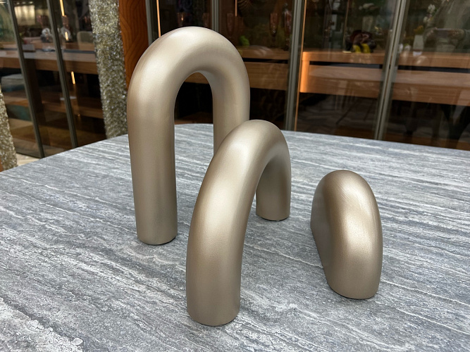 Интерьерный аксессуар из керамики. Скульптурная композиция из трех элементов. Отделка шампань. Размер L 22 H 30 cm/ L 30 H 20 cm/ L 20 H 12 cm Бренд Adriani & Rossi был создан в 1994 году Стефано Адриани. Adriani & Rossi специализируется на объектах декора интерьера жилых помещений, интерьерных салонов, выставочных, офисных и других пространств. В 2011 году бренд получил Золотой Компас - важнейшую премию в мире в сфере дизайна.