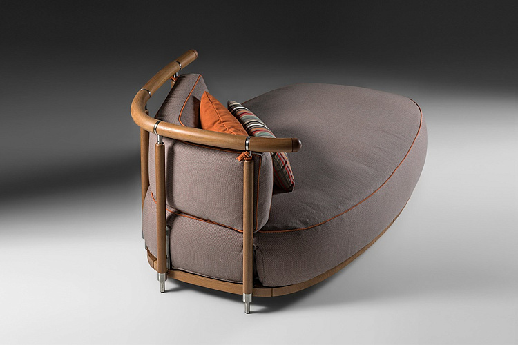 Шезлонг Camomilla, выполненный из древесины iroko и нержавеющей стали 316, предназначен для использования на открытом воздухе.