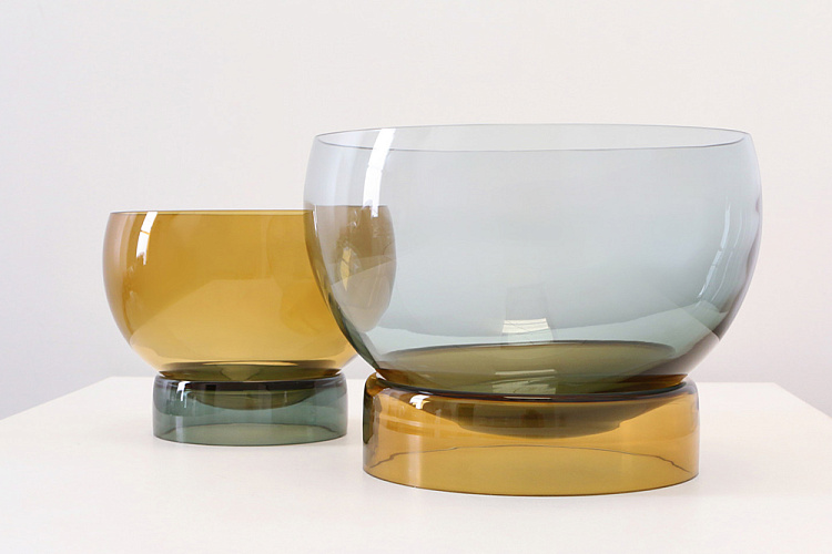 Верхний округлый край тщательно отполирован, что позволяет в полной мере оценить благородную толщину стекла. Цветовая палитра — олива, сосновая зелень, дымчатый — подобрана с особым вниманием: эти глубокие, сложные оттенки мягко преломляют свет и органично существуют в интерьерах самой разной стилистики.