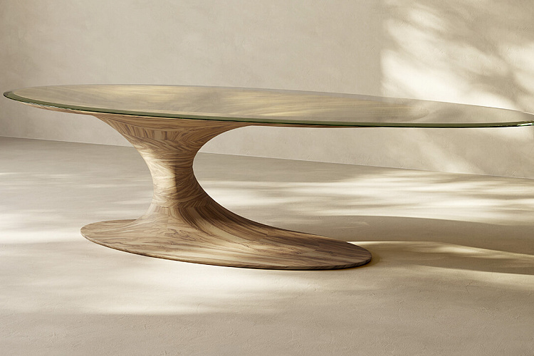 Обеденный стол Uragano — это гимн красоте и природному изобилию Апулии. Его массивное основание из оливкового дерева, подобное древнему стволу с мощными корнями, служит опорой для большой овальной столешницы из стекла. Этот контраст создаёт ощущение, будто дерево стремится вверх, к солнцу и лёгкому ветру — символам этого края.